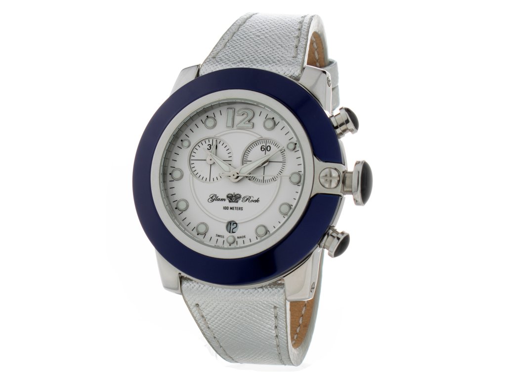 HODINKY GLAM ROCK WOMAN GR32116 (44MM). Typ mechanizmu: ŠVAJČIARSKY OKRÚHLY QUARTZ. Displej: HODINKY: ANALÓGOVÉ. Materiál puzdra: MATERIÁL PUZDRA: OCEĽ. Farba puzdra: STRIEBORNÁ POVRCHOVÁ ÚPRAVA. Materiál náramku: MATERIÁL NÁRAMKU: KOŽA. Farba náramku: STRIEBORNÁ FARBA NÁRAMKU. Farba ciferníka: BIELA. Typ skla: SKLÍČKO: SAFFIR. Sklo: HEBILLA. Priemer ciferníka: dĹŽKA CIFERNÍKA: 44MM. Ponorný: 10ATM