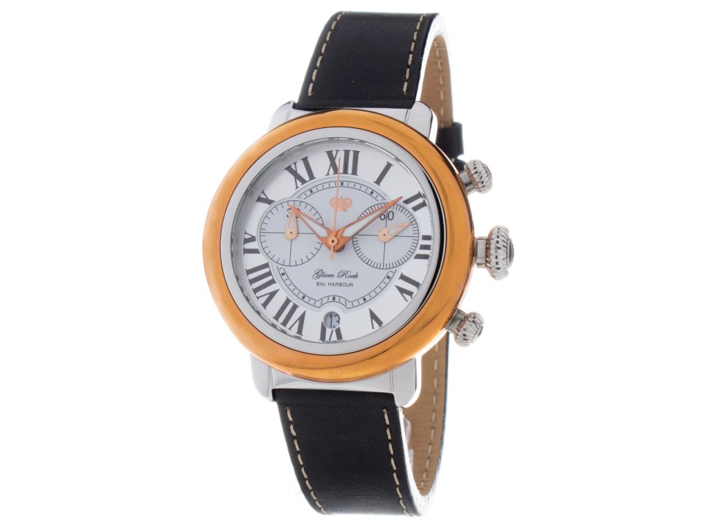 HODINKY GLAM ROCK WOMAN GR77123 (40MM). Typ mechanizmu: QUARTZ ROUND SWISS MADE. Displej: HODINKY: ANALÓGOVÉ. Materiál puzdra: MATERIÁL PUZDRA: OCEĽ. Farba puzdra: STRIEBORNÁ: FARBA PUZDRA: STRIEBORNÁ. Materiál náramku: MATERIÁL NÁRAMKU: KOŽA. Farba náramku: FARBA NÁRAMKU: ČIERNA. Farba ciferníka: BIELA. Typ skla: SKLÍČKO: SAPPHIRE. Kľučka: BUCKLE. Priemer ciferníka: dĹŽKA CIFERNÍKA: 40MM. Ponorný: 10ATM