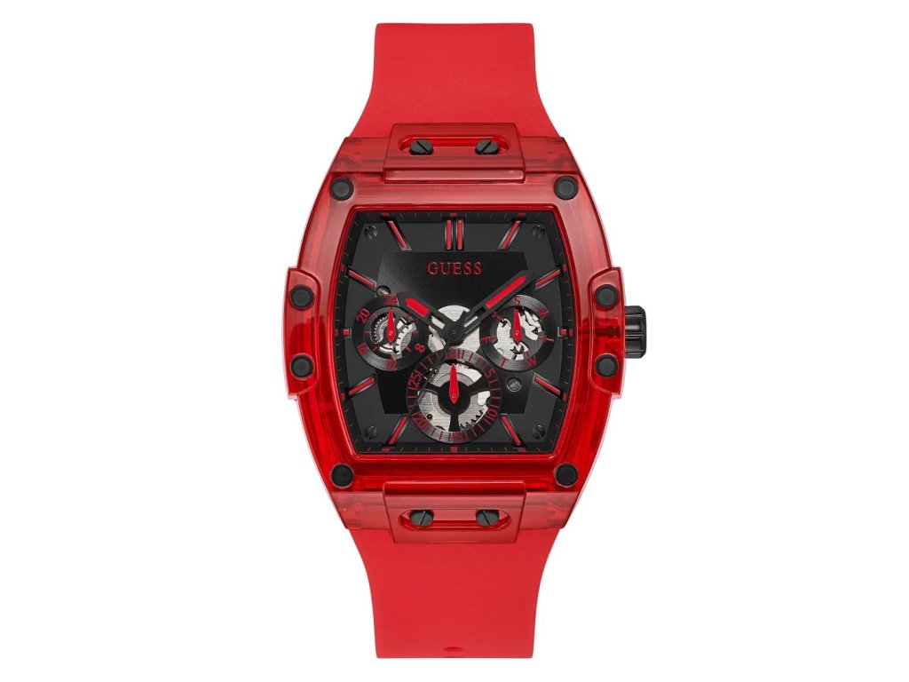 HODINKY GUESS MAN GW0203G5 (43MM). Typ mechanizmu: QUARTZ. Displej: HODINKY: ANALOGICKÉ. Materiál puzdra: MATERIÁL: NEHRDZAVEJÚCA OCEĽ. Farba puzdra: FARBA: ČERVENÁ. Materiál náramku: MATERIÁL NÁRAMKU: SILIKÓN. Farba náramku: FARBA: ČERVENÁ. Farba ciferníka: ČIERNA. Typ skla: FARBA: MINERÁLNE. Kľučka: BUCKLE. Priemer ciferníka: dĹŽKA CIFERNÍKA: 43MM. Ponorný: NE