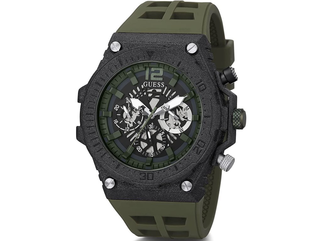 HODINKY GUESS MAN GW0325G2 (48MM). Typ mechanizmu: QUARTZ. Displej: HODINKY: ANALÓGOVÉ. Materiál puzdra: MATERIÁL PUZDRA: ŽIVICA. Farba puzdra: FARBA PUZDRA: ČIERNA. Materiál náramku: MATERIÁL NÁRAMKU: SILIKÓN. Farba náramku: FARBA NÁRAMKU: ZELENÁ. Farba ciferníka: ČIERNA. Typ skla: MINERÁLNE. Kľučka: BUCKLE. Priemer ciferníka: dĹŽKA CIFERNÍKA: 48 MM. Ponorný: 5ATM