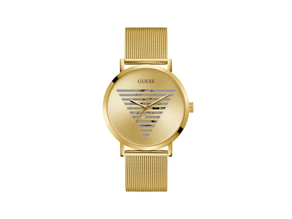 HODINKY GUESS MAN GW0502G1 (44MM). Typ mechanizmu: QUARTZ. Displej: HODINKY: ANALOGICKÉ. Materiál puzdra: MATERIÁL: NEHRDZAVEJÚCA OCEĽ. Farba puzdra: FARBA: ZLATÁ. Materiál náramku: MATERIÁL NÁRAMKU: NEHRDZAVEJÚCA OCEĽ. Farba náramku: ZLATÁ. Farba ciferníka: ZLATÁ. Typ skla: MINERÁLNE. Sklo: TLAK. Priemer ciferníka: dĹŽKA CIFERNÍKA: 44MM. Ponorný: 5ATM