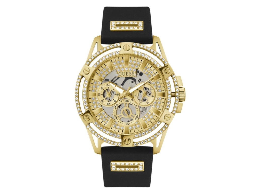 HODINKY GUESS MAN GW0537G2 (48 MM). Typ mechanizmu: QUARTZ. Displej: HODINKY: ANALÓGOVÉ. Materiál puzdra: MATERIÁL: NEHRDZAVEJÚCA OCEĽ. Farba puzdra: FARBA: ZLATÁ. Materiál náramku: MATERIÁL NÁRAMKU: SILIKÓN. Farba náramku: FARBA NÁRAMKU: ČIERNA. Farba ciferníka: FARBA CIFERNÍKA: ZLATÁ. Typ skla: SKLÍČKO: MINERÁLNE. Kľučka: BUCKLE. Priemer ciferníka: dĹŽKA CIFERNÍKA: 48 MM. Ponorný: 5ATM