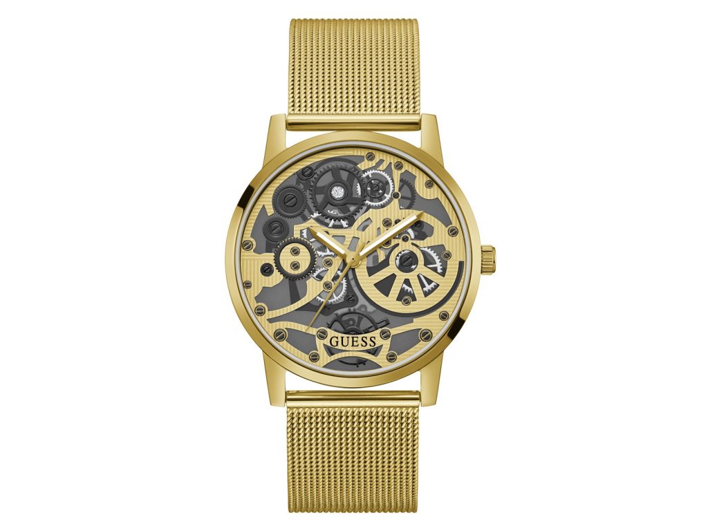 HODINKY GUESS MAN GW0538G2 (42MM). Typ mechanizmu: QUARTZ. Displej: HODINKY: ANALOGICKÉ. Materiál puzdra: MATERIÁL: NEHRDZAVEJÚCA OCEĽ. Farba puzdra: FARBA: ZLATÁ. Materiál náramku: MATERIÁL NÁRAMKU: NEHRDZAVEJÚCA OCEĽ. Farba náramku: ZLATÁ. Farba ciferníka: FARBA CIFERNÍKA: ŠEDÁ. Typ skla: SKLÍČKO: MINERÁLNE. Sklo: TLAK. Priemer ciferníka: dĹŽKA CIFERNÍKA: 42MM. Ponorný: 5ATM