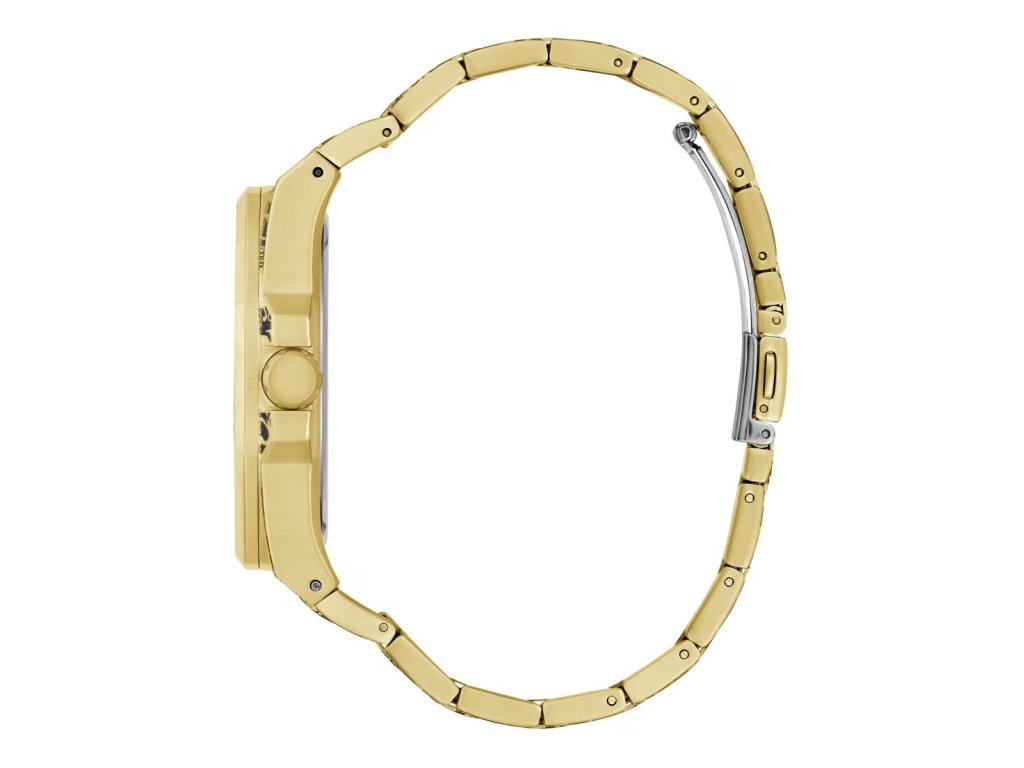 HODINKY GUESS MAN GW0700G1 (46MM). Typ mechanizmu: QUARTZ. Displej: HODINKY: ANALOGICKÉ. Materiál puzdra: MATERIÁL: NEHRDZAVEJÚCA OCEĽ. Farba puzdra: FARBA: ZLATÁ. Materiál náramku: MATERIÁL NÁRAMKU: NEHRDZAVEJÚCA OCEĽ. Farba náramku: FARBA NÁRAMKU: ČIERNA. Farba ciferníka: ČIERNA. Typ skla: MINERÁLNE. Clousure: TLAKOVÁ. Priemer ciferníka: dĹŽKA CIFERNÍKA: 46 MM. Ponorný: 5ATM