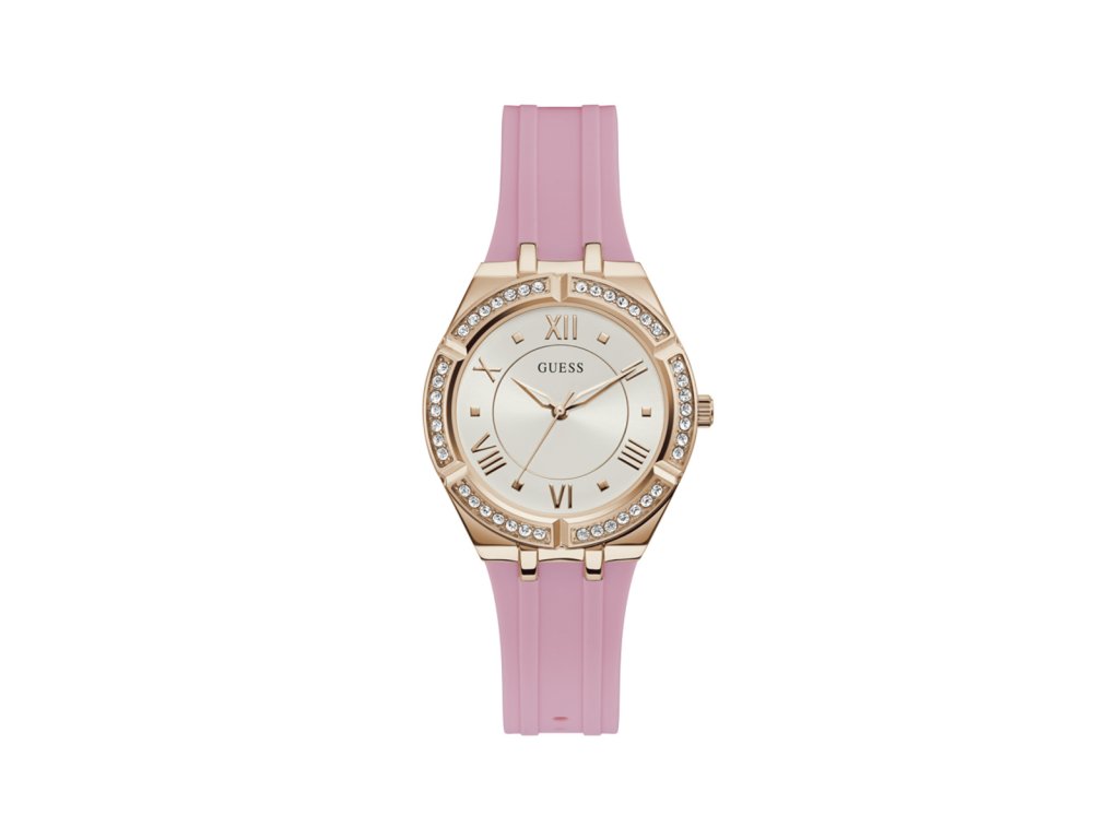 HODINKY GUESS WOMAN GW0034L3 (40MM). Typ mechanizmu: QUARTZ. Displej: HODINKY: ANALÓGOVÉ. Materiál puzdra: MATERIÁL: NEHRDZAVEJÚCA OCEĽ. Farba puzdra: FARBA: ZLATÁ. Materiál náramku: MATERIÁL NÁRAMKU: GUMA. Farba náramku: FARBA NÁRAMKU: RUŽOVÁ. Farba ciferníka: ZLATÁ. Typ skla: SKLÍČKO: MINERÁLNE. Kľučka: BUCKLE. Priemer ciferníka: dĹŽKA CIFERNÍKA: 40MM. Ponorný: