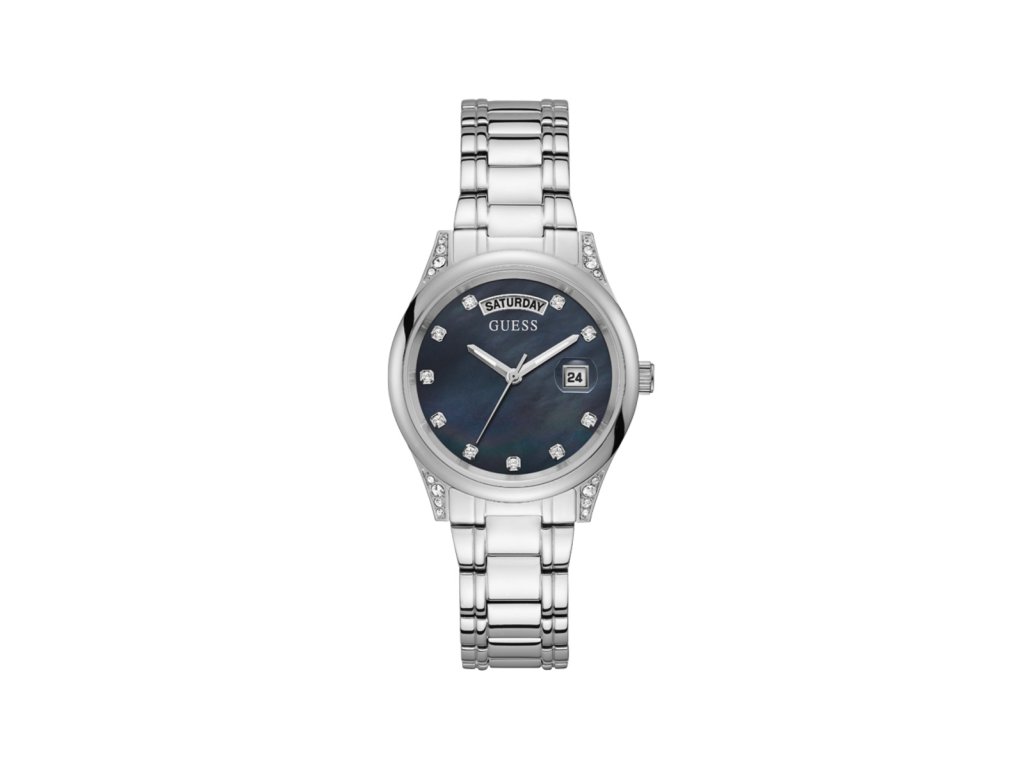 HODINKY GUESS WOMAN GW0047L1 (36 MM). Typ mechanizmu: QUARTZ. Displej: HODINKY: ANALÓGOVÉ. Materiál puzdra: MATERIÁL: NEHRDZAVEJÚCA OCEĽ. Farba puzdra: STRIEBORNÁ: FARBA PUZDRA: STRIEBORNÁ. Materiál náramku: MATERIÁL NÁRAMKU: NEHRDZAVEJÚCA OCEĽ. Farba náramku: FARBA NÁRAMKU: STRIEBORNÁ. Farba ciferníka: ČIERNA. Typ skla: FARBA: MINERÁLNE. Clousure: SKLÍČKO: DEPLYONTE. Priemer ciferníka: dĹŽKA CIFERNÍKA: 36 MM. Ponorný: pÔSOBENIE: 3 ATM