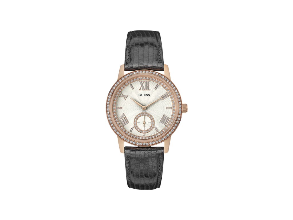HODINKY GUESS WOMAN W0642L3 (39MM). Typ mechanizmu: QUARTZ. Displej: HODINKY: ANALÓGOVÉ. Materiál puzdra: MATERIÁL: NEHRDZAVEJÚCA OCEĽ. Farba puzdra: FARBA PUZDRA: RUŽOVÉ ZLATO. Materiál náramku: MATERIÁL NÁRAMKU: KOŽA. Farba náramku: FARBA NÁRAMKU: ŠEDÁ. Farba ciferníka: BIELA. Typ skla: SKLÍČKO: MINERÁLNE. Kľučka: BUCKLE. Priemer ciferníka: dĹŽKA CIFERNÍKA: 39 MM. Ponorný: NE