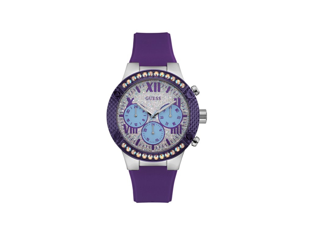 HODINKY GUESS WOMAN W0772L5 (39MM). Typ mechanizmu: QUARTZ. Displej: HODINKY: ANALÓGOVÉ. Materiál puzdra: MATERIÁL PUZDRA: OCEĽ. Farba puzdra: STRIEBORNÁ: FARBA PUZDRA: STRIEBORNÁ. Materiál náramku: MATERIÁL NÁRAMKU: SILIKÓN. Farba náramku: lila. Farba ciferníka: STRIEBORNÁ. Typ skla: FARBA: MINERÁL. Kľučka: BUCKLE. Priemer ciferníka: dĹŽKA CIFERNÍKA: 39MM. Ponorný: NE