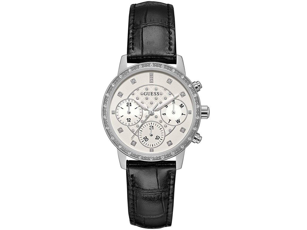 HODINKY GUESS WOMAN W0957L2 (37MM). Typ mechanizmu: QUARTZ. Displej: HODINKY: ANALÓGOVÉ. Materiál puzdra: MATERIÁL: NEHRDZAVEJÚCA OCEĽ. Farba puzdra: STRIEBORNÁ: FARBA PUZDRA: STRIEBORNÁ. Materiál náramku: MATERIÁL NÁRAMKU: KOŽA. Farba náramku: FARBA NÁRAMKU: ČIERNA. Farba ciferníka: STRIEBORNÁ. Typ skla: SKLÍČKO: MINERÁLNE. Kľučka: BUCKLE. Priemer ciferníka: dĹŽKA CIFERNÍKA: 37MM. Ponorný: 5ATM