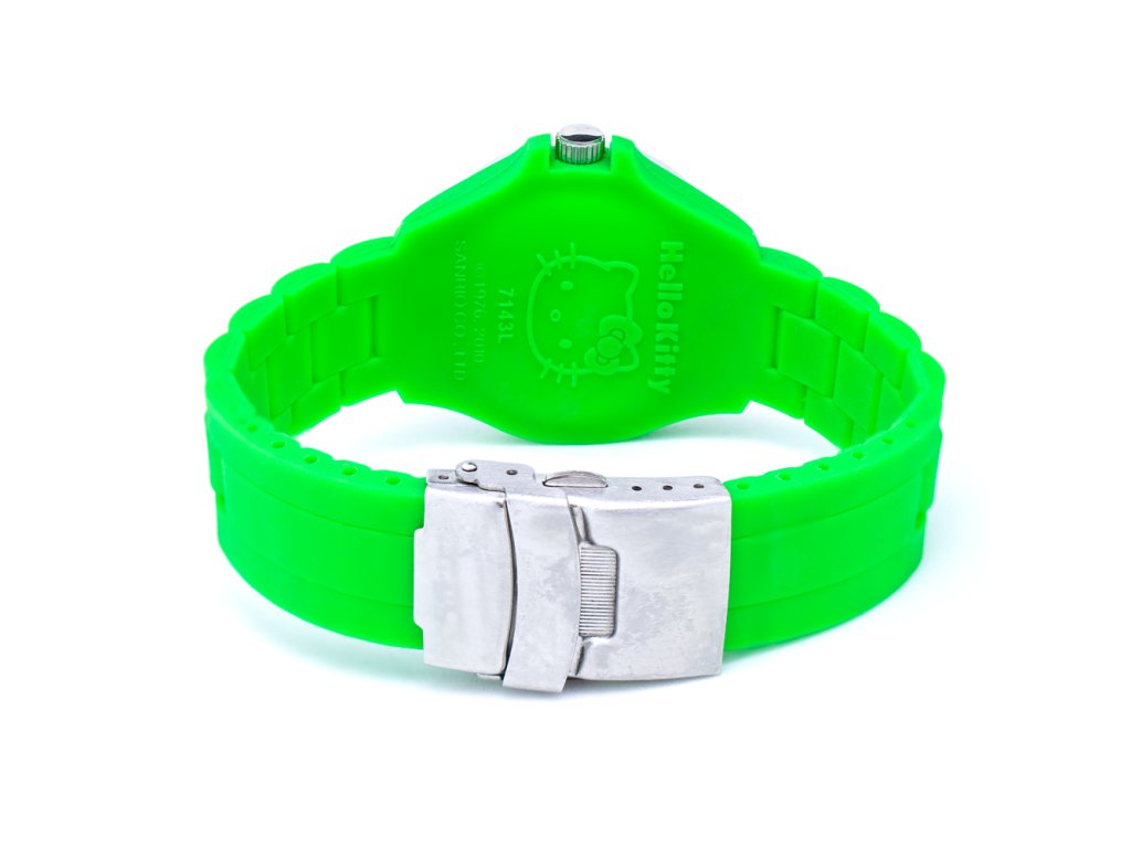 HODINKY HELLO KITTY WOMAN HK7143L-18 (38MM). Typ mechanizmu: QUARTZ. Displej: HODINKY: ANALÓGOVÉ. Materiál puzdra: MATERIÁL PUZDRA: GUMA. Farba puzdra: FARBA PUZDRA: ZELENÁ. Materiál náramku: MATERIÁL NÁRAMKU: GUMA. Farba náramku: FARBA NÁRAMKU: ZELENÁ. Farba ciferníka: FARBA NÁRAMKU: ZELENÁ. Typ skla: SKLÍČKO: MINERÁLNE. Sklo: BUTTERFLY. Priemer ciferníka: dĹŽKA CIFERNÍKA: 38MM. Ponorný: NE