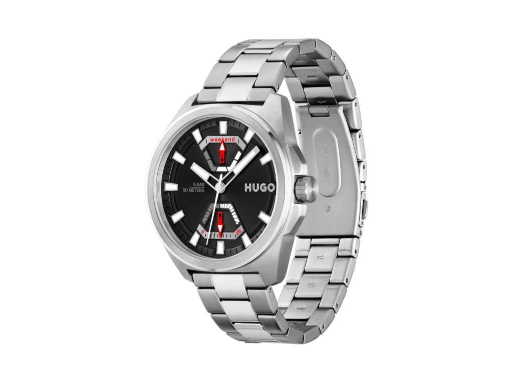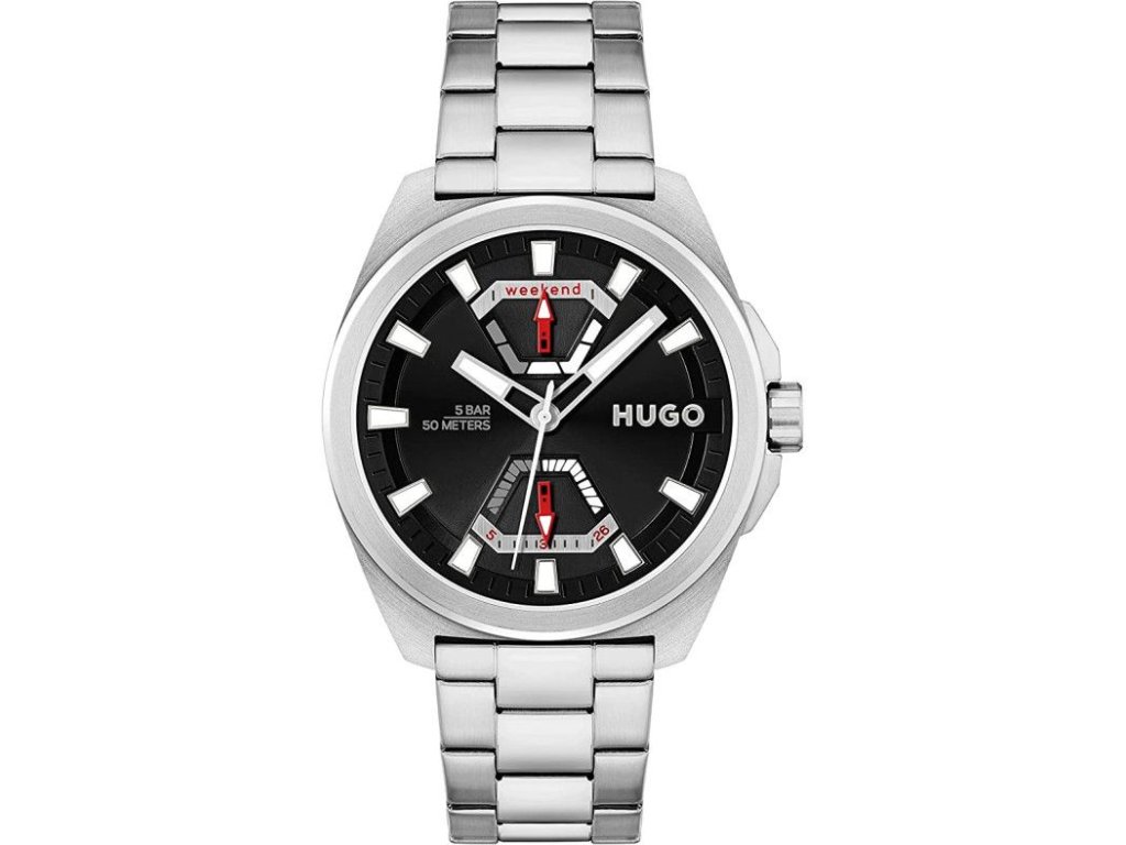 HODINKY HUGO MAN 1530242 (44MM). Typ mechanizmu: QUARTZ. Displej: HODINKY: ANALOGICKÉ. Materiál puzdra: MATERIÁL: NEHRDZAVEJÚCA OCEĽ. Farba puzdra: FARBA PUZDRA: ŠEDÁ. Materiál náramku: MATERIÁL NÁRAMKU: NEHRDZAVEJÚCA OCEĽ. Farba náramku: FARBA NÁRAMKU: ŠEDÁ. Farba ciferníka: ČIERNA. Typ skla: SKLÍČKO: MINERÁLNE. Clousure: BUTTERFLY. Priemer ciferníka: dĹŽKA CIFERNÍKA: 44MM. Ponoriteľnosť: 5ATM