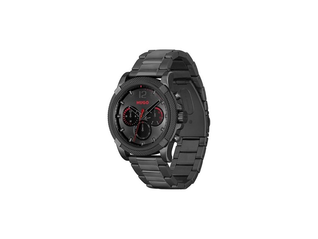 HODINKY HUGO MAN 1530296 (47MM). Typ mechanizmu: QUARTZ. Displej: HODINKY: ANALOGICKÉ. Materiál puzdra: MATERIÁL: NEHRDZAVEJÚCA OCEĽ. Farba puzdra: FARBA PUZDRA: ČIERNA. Materiál náramku: MATERIÁL NÁRAMKU: NEHRDZAVEJÚCA OCEĽ. Farba náramku: FARBA NÁRAMKU: ČIERNA. Farba ciferníka: ČIERNA. Typ skla: MINERÁLNE. Clousure: BUTTERFLY. Priemer ciferníka: dĹŽKA CIFERNÍKA: 47 MM. Ponorný: hĹBKA: 3ATM