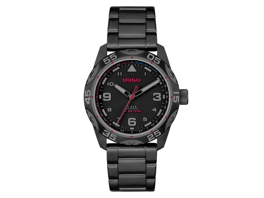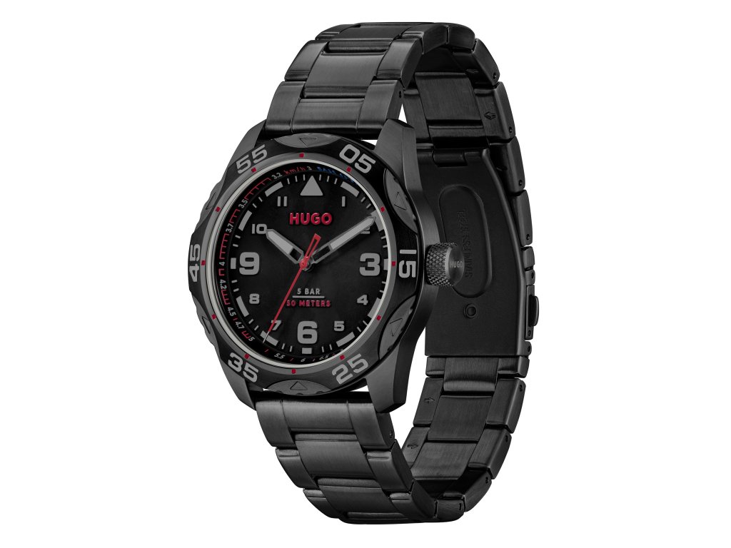 HODINKY HUGO MAN 1530333 (42MM). Typ mechanizmu: QUARTZ. Displej: HODINKY: ANALOGICKÉ. Materiál puzdra: MATERIÁL: NEHRDZAVEJÚCA OCEĽ. Farba puzdra: FARBA PUZDRA: ČIERNA. Materiál náramku: MATERIÁL NÁRAMKU: NEHRDZAVEJÚCA OCEĽ. Farba náramku: FARBA NÁRAMKU: ČIERNA. Farba ciferníka: ČIERNA. Typ skla: MINERÁLNE. Clousure: TLAKOVÁ. Priemer ciferníka: dĹŽKA CIFERNÍKA: 42MM. Ponorný: 5ATM