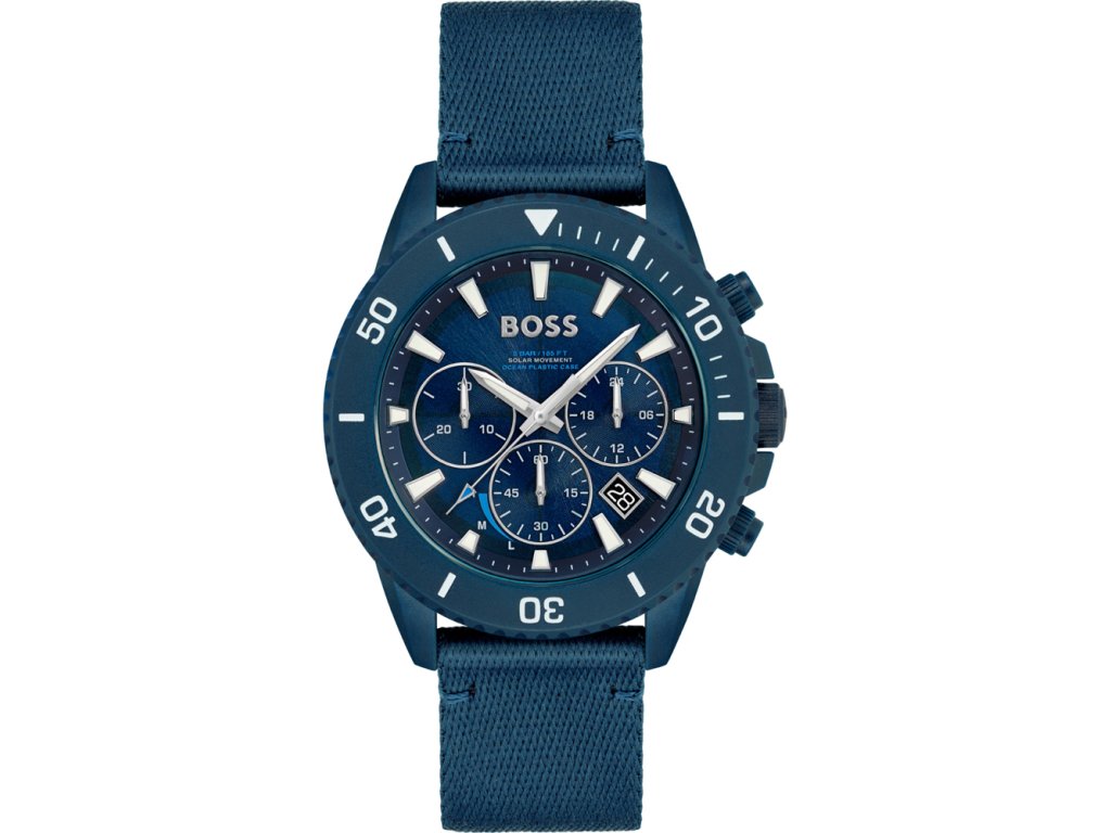 HODINKY HUGO BOSS MAN 1513919 (46 MM). Typ mechanizmu: QUARTZ. Displej: HODINKY: ANALÓGOVÉ. Materiál puzdra: MATERIÁL: NEHRDZAVEJÚCA OCEĽ. Farba puzdra: FARBA: MODRÁ. Materiál náramku: Materiál náramku: tkanina. Farba náramku: FARBA: MODRÁ. Farba ciferníka: MODRÁ. Typ skla: SKLÍČKO: MINERÁLNE. Uzáver: BUCKLE. Priemer ciferníka: pRIEMER CIFERNÍKA: 46 MM. Ponoriteľnosť: 5 ATM