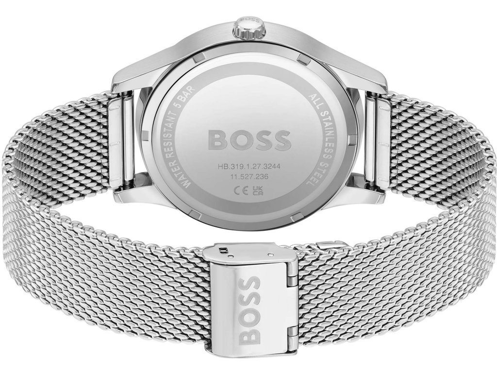 HODINKY HUGO BOSS MAN 1513985 (50MM). Typ mechanizmu: QUARTZ. Displej: HODINKY: ANALÓGOVÉ. Materiál puzdra: MATERIÁL: NEHRDZAVEJÚCA OCEĽ. Farba puzdra: FARBA PUZDRA: ŠEDÁ. Materiál náramku: MATERIÁL NÁRAMKU: NEHRDZAVEJÚCA OCEĽ. Farba náramku: FARBA NÁRAMKU: ŠEDÁ. Farba ciferníka: MODRÁ. Typ skla: SKLÍČKO: MINERÁLNE. Clousure: TLAKOVÁ NÁDOBA: TLAKOVÁ. Priemer ciferníka: 50MM. Ponorný: 5ATM