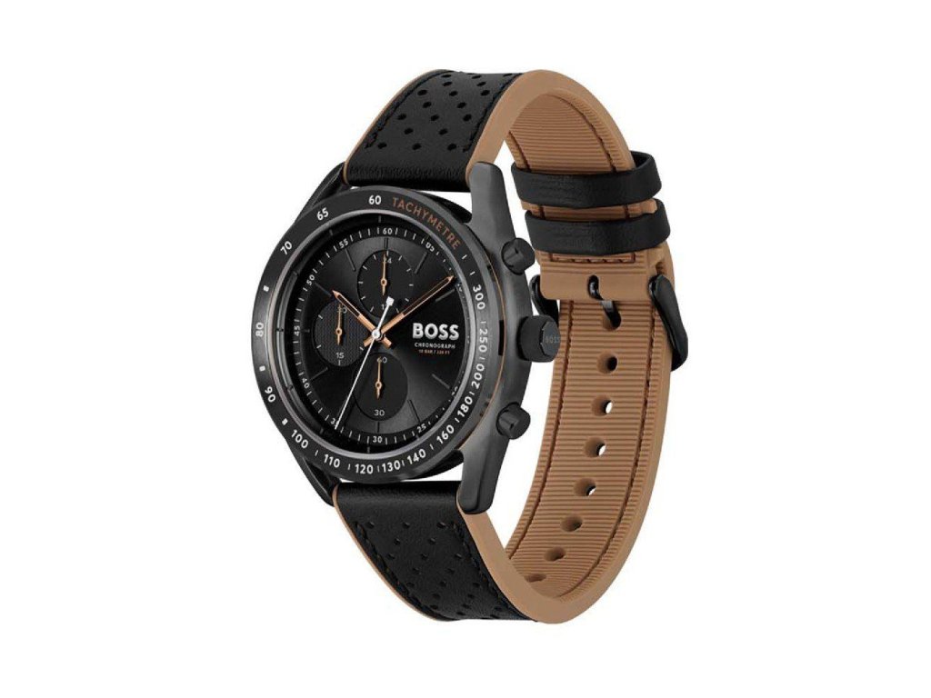 HODINKY HUGO BOSS MAN 1514022 (44MM). Typ mechanizmu: QUARTZ. Displej: HODINKY: ANALÓGOVÉ. Materiál puzdra: MATERIÁL: NEHRDZAVEJÚCA OCEĽ. Farba puzdra: FARBA PUZDRA: ČIERNA. Materiál náramku: MATERIÁL NÁRAMKU: KOŽA. Farba náramku: FARBA NÁRAMKU: ČIERNA. Farba ciferníka: ČIERNA. Typ skla: SKLÍČKO: MINERÁLNE. Kľučka: BUCKLE. Priemer ciferníka: dĹŽKA CIFERNÍKA: 44MM. Ponorný: 10ATM