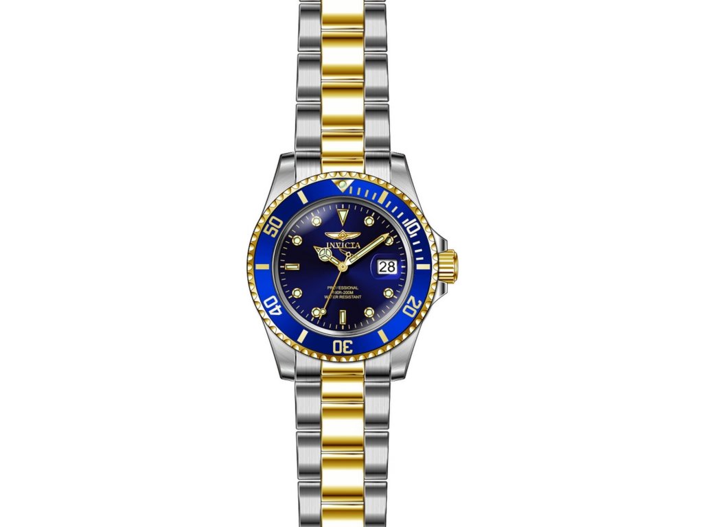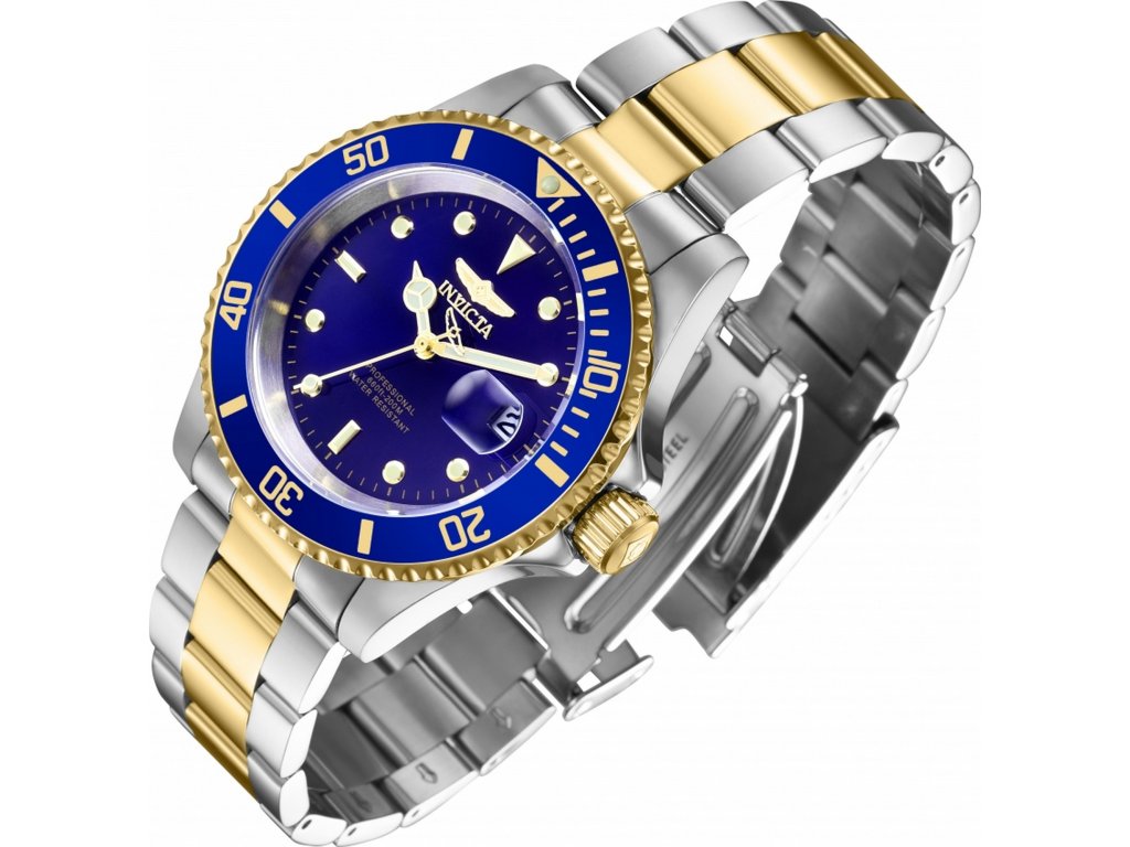 Pánske hodinky Invicta Pro Diver 26972 prinášajú kombináciu osobitého dizajnu a profesionálnej odolnosti.Pevné okrúhle puzdro a ťahadlo z nehrdzavejúcej ocele v dvojfarebnom (dvojfarebnom) dizajne kombinujú strieborné a zlaté tóny do vyváženého, ale výrazného celku.