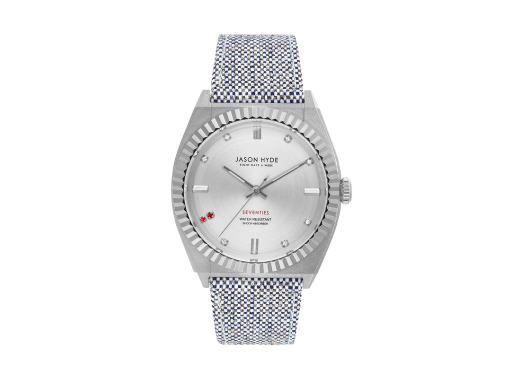 HODINKY JASON HYDE WOMAN JH20000 (36MM). Typ mechanizmu: QUARTZ. Displej: HODINKY: ANALÓGOVÉ. Materiál puzdra: MATERIÁL: NEHRDZAVEJÚCA OCEĽ. Farba puzdra: FARBA: ŠEDÁ. Materiál náramku: MATERIÁL NÁRAMKU: TEXTIL. Farba náramku: FARBA NÁRAMKU: ŠEDÁ. Farba ciferníka: STRIEBORNÁ. Typ skla: MINERÁLNE. Kľučka: BUCKLE. Priemer ciferníka: dĹŽKA CIFERNÍKA: 36MM. Ponorný: 5ATM