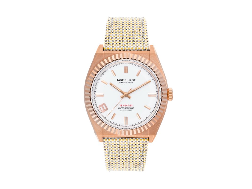 HODINKY JASON HYDE WOMAN JH20013 (36MM). Typ mechanizmu: QUARTZ. Displej: HODINKY: ANALÓGOVÉ. Materiál puzdra: MATERIÁL: NEHRDZAVEJÚCA OCEĽ. Farba puzdra: FARBA PUZDRA: RUŽOVÉ ZLATO. Materiál náramku: MATERIÁL NÁRAMKU: TEXTIL. Farba náramku: FARBA NÁRAMKU: HNEDÁ. Farba ciferníka: BIELA. Typ skla: SKLÍČKO: MINERÁLNE. Kľučka: BUCKLE. Priemer ciferníka: dĹŽKA CIFERNÍKA: 36MM. Ponorný: 5ATM