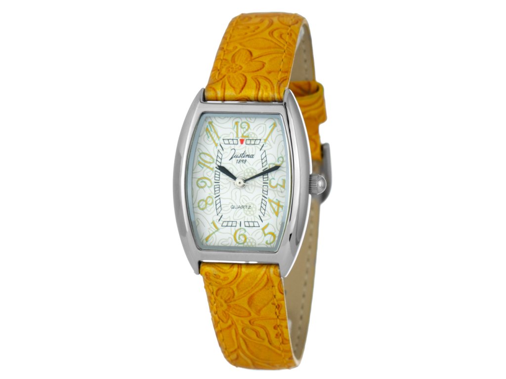HODINKY JUSTINA WOMAN 21741M (22MM). Typ mechanizmu: QUARTZ. Displej: TYP: ANALÓGOVÝ. Materiál puzdra: MATERIÁL PUZDRA: OCEĽ. Farba puzdra: STRIEBORNÁ: FARBA PUZDRA: STRIEBORNÁ. Materiál náramku: MATERIÁL NÁRAMKU: KOŽA. Farba náramku: FARBA NÁRAMKU: ORANŽOVÁ. Farba ciferníka: BIELA. Typ skla: SKLÍČKO: MINERÁLNE. Kľučka: BUCKLE. Priemer ciferníka: dĹŽKA CIFERNÍKA: 22 MM. Ponorný: NE