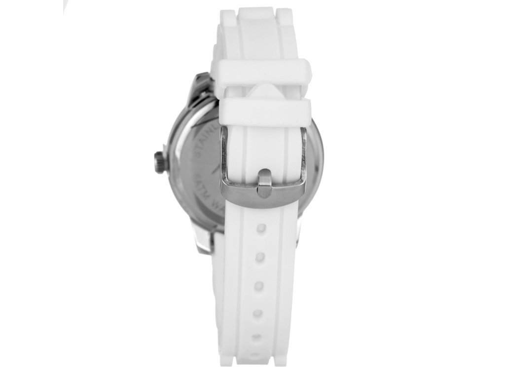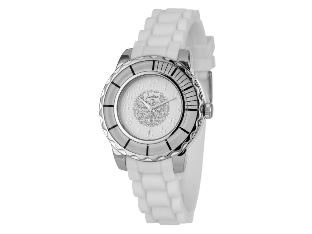 HODINKY JUSTINA WOMAN 21976B (39MM). Typ mechanizmu: QUARTZ. Displej: HODINKY: ANALÓGOVÉ. Materiál puzdra: MATERIÁL PUZDRA: OCEĽ. Farba puzdra: STRIEBORNÁ: FARBA PUZDRA: STRIEBORNÁ. Materiál náramku: MATERIÁL NÁRAMKU: GUMA. Farba náramku: FARBA NÁRAMKU: BIELA. Farba ciferníka: BIELA. Typ skla: SKLÍČKO: MINERÁLNE. Kľučka: BUCKLE. Priemer ciferníka: dĹŽKA CIFERNÍKA: 39 MM. Ponoriteľnosť: 5ATM