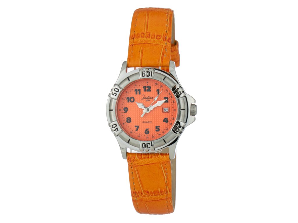HODINKY JUSTINA WOMAN 32551 (30MM). Typ mechanizmu: QUARTZ. Displej: HODINKY: ANALÓGOVÉ. Materiál puzdra: MATERIÁL PUZDRA: OCEĽ. Farba puzdra: STRIEBORNÁ: FARBA PUZDRA: STRIEBORNÁ. Materiál náramku: MATERIÁL NÁRAMKU: KOŽA. Farba náramku: FARBA NÁRAMKU: ORANŽOVÁ. Farba ciferníka: FARBA CIFERNÍKA: ORANŽOVÁ. Typ skla: MINERÁLNE. Kľučka: BUCKLE. Priemer ciferníka: dĹŽKA CIFERNÍKA: 30MM. Ponorný: NE