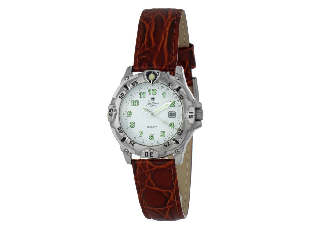 HODINKY JUSTINA WOMAN 32555M (32MM). Typ mechanizmu: QUARTZ. Displej: HODINKY: ANALOGICKÉ. Materiál puzdra: MATERIÁL PUZDRA: OCEĽ. Farba puzdra: STRIEBORNÁ: FARBA PUZDRA: STRIEBORNÁ. Materiál náramku: MATERIÁL NÁRAMKU: KOŽA. Farba náramku: FARBA NÁRAMKU: HNEDÁ. Farba ciferníka: BIELA. Typ skla: SKLÍČKO: MINERÁLNE. Kľučka: BUCKLE. Priemer ciferníka: dĹŽKA CIFERNÍKA: 32MM. Ponorný: NE