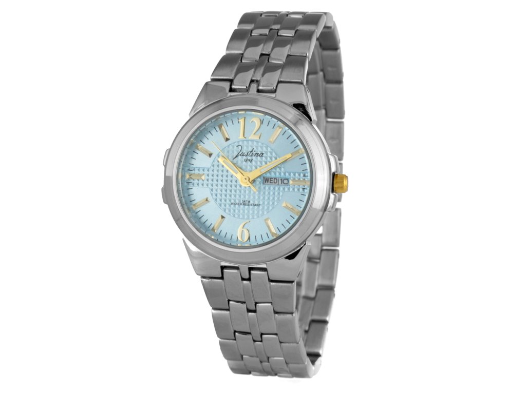 HODINKY JUSTINA WOMAN JPB37 (31MM). Typ mechanizmu: QUARTZ. Displej: HODINKY: ANALÓGOVÉ. Materiál puzdra: MATERIÁL PUZDRA: OCEĽ. Farba puzdra: STRIEBORNÁ: FARBA PUZDRA: STRIEBORNÁ. Materiál náramku: MATERIÁL NÁRAMKU: OCEĽ. Farba náramku: STRIEBORNÁ FARBA NÁRAMKU. Farba ciferníka: MODRÁ. Typ skla: SKLÍČKO: MINERÁLNE. Clousure: TLAKOVÁ. Priemer ciferníka: dĹŽKA CIFERNÍKA: 31MM. Ponorný: NE