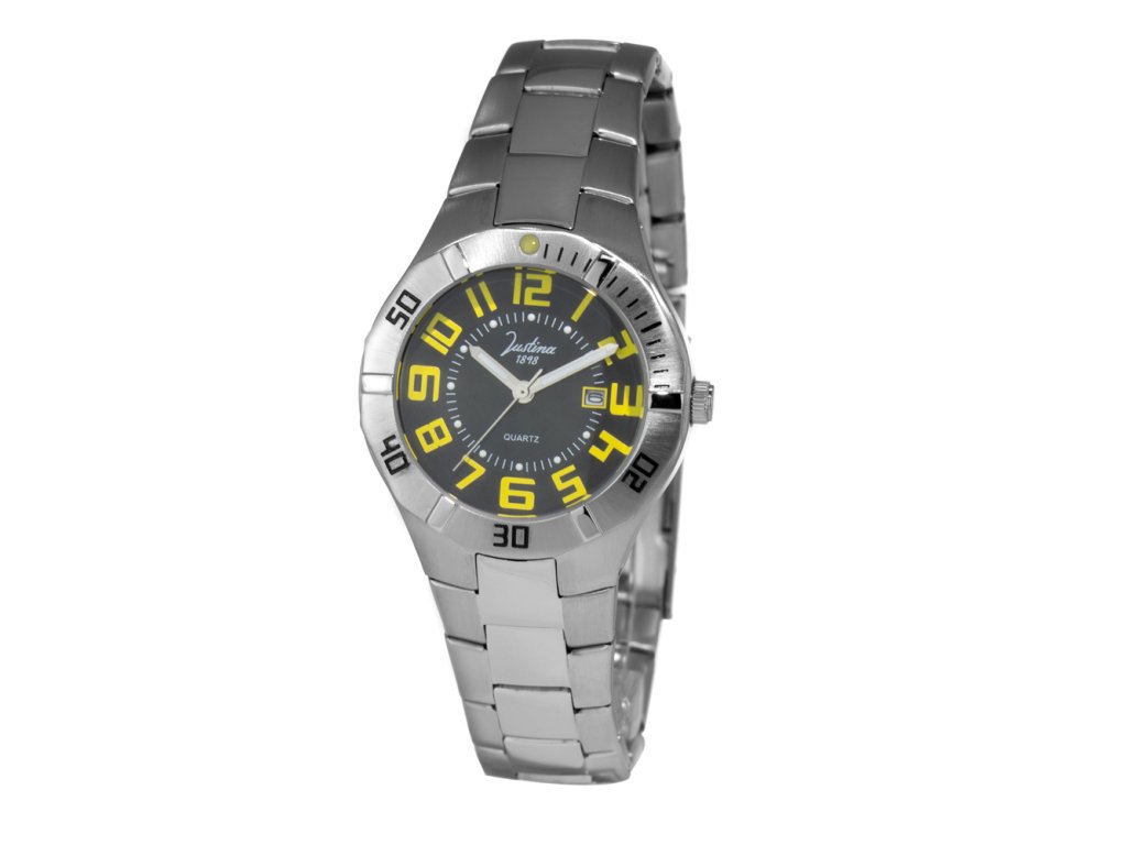 SLEDOVAŤ JUSTINA WOMAN JPN14 (35MM). Typ mechanizmu: QUARTZ. Displej: TYP: ANALÓGOVÝ. Materiál puzdra: MATERIÁL PUZDRA: OCEĽ. Farba puzdra: STRIEBORNÁ: FARBA PUZDRA: STRIEBORNÁ. Materiál náramku: MATERIÁL NÁRAMKU: OCEĽ. Farba náramku: STRIEBORNÁ FARBA NÁRAMKU. Farba ciferníka: ČIERNA. Typ skla: SKLÍČKO: MINERÁLNE. Clousure: TLAKOVÁ. Priemer ciferníka: dĹŽKA CIFERNÍKA: 35 MM. Ponorný: NE