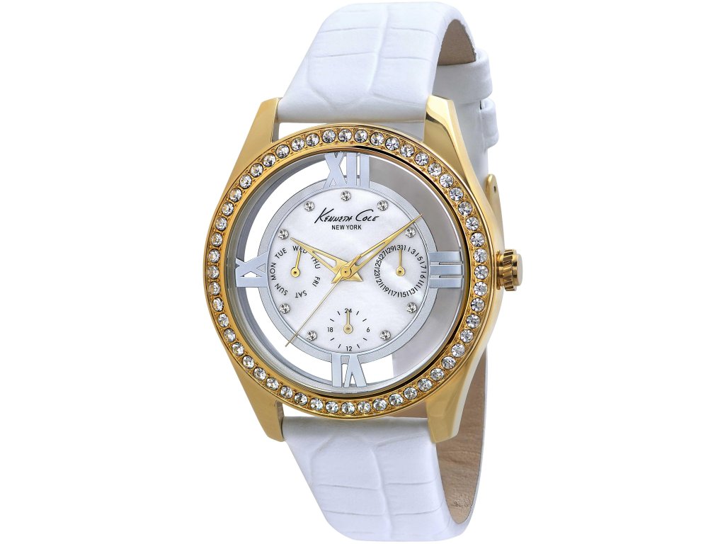 HODINKY KENNETH COLE WOMAN IKC2793 (40MM). Typ mechanizmu: QUARTZ. Displej: HODINKY: ANALÓGOVÉ. Materiál puzdra: MATERIÁL PUZDRA: OCEĽ. Farba puzdra: ZLATÁ. Materiál náramku: MATERIÁL NÁRAMKU: KOŽA. Farba náramku: FARBA NÁRAMKU: BIELA. Farba ciferníka: ZLATÁ. Typ skla: SKLÍČKO: MINERÁLNE. Kľučka: BUCKLE. Priemer ciferníka: dĹŽKA CIFERNÍKA: 40MM. Ponorný: NE