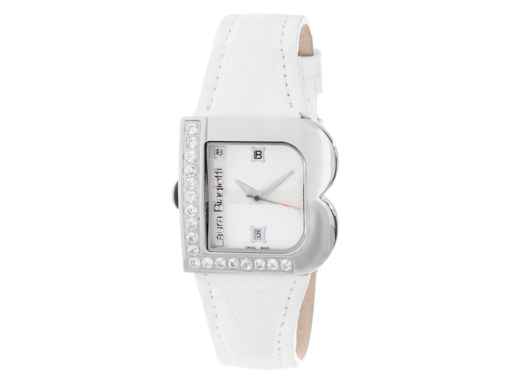 HODINKY LAURA BIAGIOTTI WOMAN LB0001L-BL (33MM). Typ mechanizmu: QUARTZ. Displej: HODINKY: ANALÓGOVÉ. Materiál puzdra: MATERIÁL: NEHRDZAVEJÚCA OCEĽ. Farba puzdra: STRIEBORNÁ: FARBA PUZDRA: STRIEBORNÁ. Materiál náramku: MATERIÁL NÁRAMKU: KOŽA. Farba náramku: FARBA NÁRAMKU: BIELA. Farba ciferníka: STRIEBORNÁ. Typ skla: SKLÍČKO: MINERÁLNE. Clousure: TLAK. Priemer ciferníka: dĹŽKA CIFERNÍKA: 33 MM. Ponorný: NE