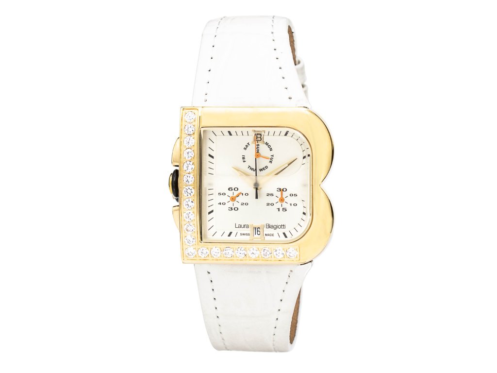 HODINKY LAURA BIAGIOTTI WOMAN LB0002-DO (33MM). Typ mechanizmu: QUARTZ. Displej: HODINKY: ANALÓGOVÉ. Materiál puzdra: MATERIÁL PUZDRA: OCEĽ. Farba puzdra: ZLATÁ. Materiál náramku: MATERIÁL NÁRAMKU: KOŽA. Farba náramku: FARBA NÁRAMKU: BIELA. Farba ciferníka: STRIEBORNÁ. Typ skla: SKLÍČKO: MINERÁLNE. Clousure: TLAK. Priemer ciferníka: dĹŽKA CIFERNÍKA: 33 MM. Ponorný: NE