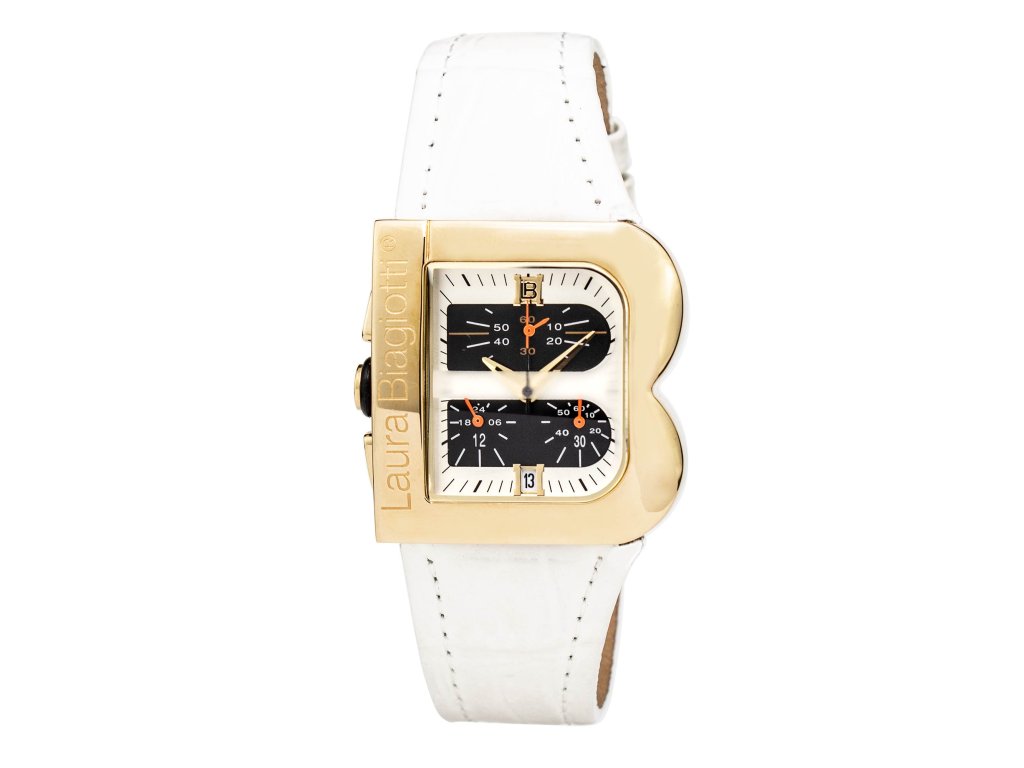 HODINKY LAURA BIAGIOTTI WOMAN LB0002L-08 (33MM). Typ mechanizmu: QUARTZ. Displej: HODINKY: ANALÓGOVÉ. Materiál puzdra: MATERIÁL PUZDRA: OCEĽ. Farba puzdra: ZLATÁ. Materiál náramku: MATERIÁL NÁRAMKU: KOŽA. Farba náramku: FARBA NÁRAMKU: BIELA. Farba ciferníka: STRIEBORNÁ. Typ skla: SKLÍČKO: MINERÁLNE. Clousure: TLAK. Priemer ciferníka: dĹŽKA CIFERNÍKA: 33 MM. Ponorný: NE