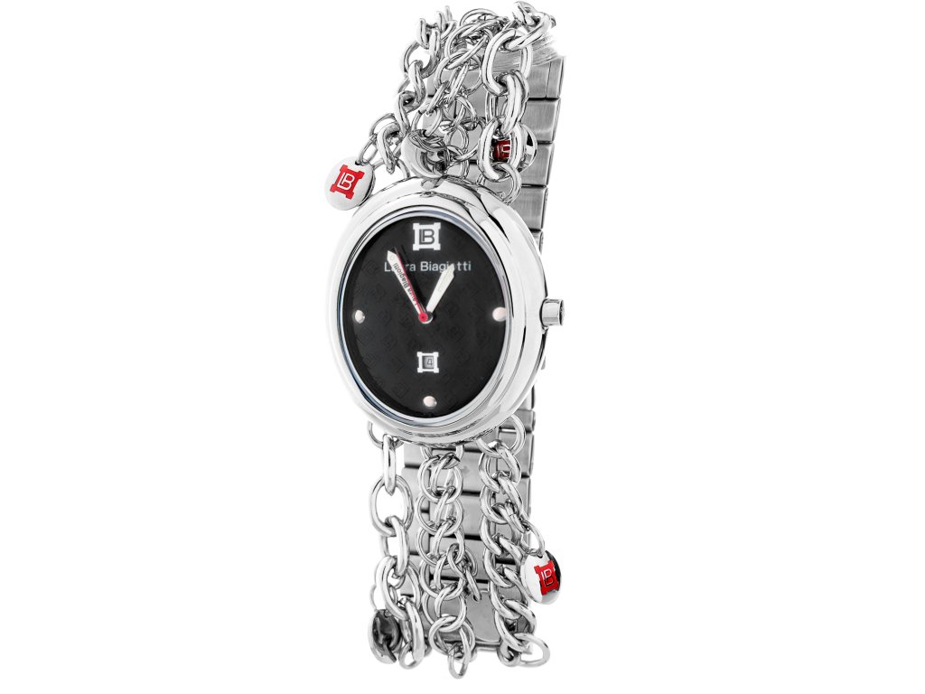 HODINKY LAURA BIAGIOTTI WOMAN LB0055L-NE (32MM). Typ mechanizmu: QUARTZ. Displej: TYP: ANALOGICKÝ. Materiál puzdra: MATERIÁL: NEHRDZAVEJÚCA OCEĽ. Farba puzdra: STRIEBORNÁ: FARBA PUZDRA: STRIEBORNÁ. Materiál náramku: MATERIÁL NÁRAMKU: OCEĽ. Farba náramku: STRIEBORNÁ FARBA NÁRAMKU. Farba ciferníka: ČIERNA. Typ skla: SKLÍČKO: MINERÁLNE. Clousure: BUTTERFLY. Priemer ciferníka: dĹŽKA CIFERNÍKA: 32 MM. Ponorný: NE