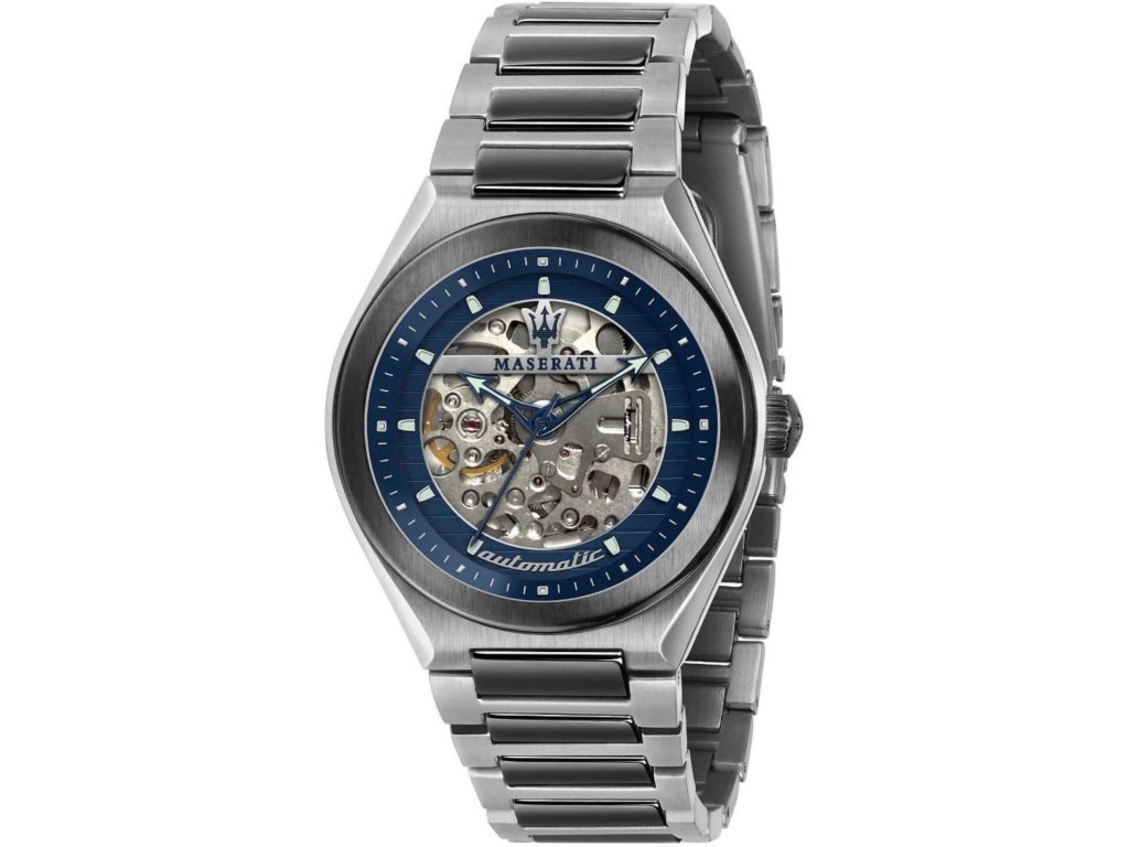 HODINKY MASERATI MAN R8823139001 (42MM). Typ mechanizmu: TYP HODINIEK: AUTOMATICKÉ. Displej: TYP: ANALÓGOVÝ. Materiál puzdra: MATERIÁL: NEREZOVÁ OCEĽ. Farba puzdra: STRIEBORNÁ: FARBA PUZDRA: STRIEBORNÁ. Materiál náramku: MATERIÁL NÁRAMKU: NEHRDZAVEJÚCA OCEĽ. Farba náramku: FARBA NÁRAMKU: STRIEBORNÁ. Farba ciferníka: MODRÁ. Typ skla: FARBA: MINERÁLNE. Clousure: SKLENENÉ SKLO: VYPÚŠŤACIE. Priemer ciferníka: dĹŽKA CIFERNÍKA: 42MM. Ponorný: 10ATM