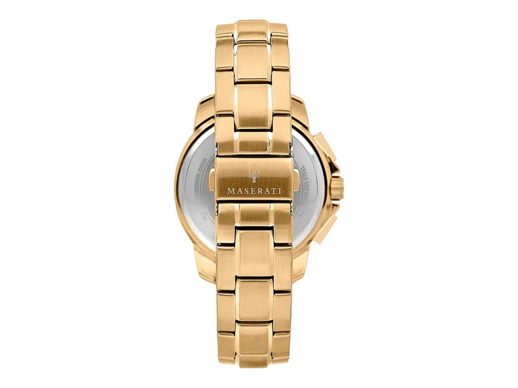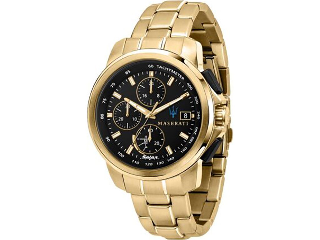 HODINKY MASERATI MAN R8873645002 (45MM). Typ mechanizmu: SOLAR. Displej: TYP: ANALÓGOVÝ. Materiál puzdra: MATERIÁL PUZDRA: NEHRDZAVEJÚCA OCEĽ. Farba puzdra: FARBA: ZLATÁ. Materiál náramku: MATERIÁL NÁRAMKU: NEHRDZAVEJÚCA OCEĽ. Farba náramku: ZLATÁ. Farba ciferníka: ČIERNA. Typ skla: MINERÁLNE. Clousure: TLAK. Priemer ciferníka: 45MM. Ponorný: 5ATM