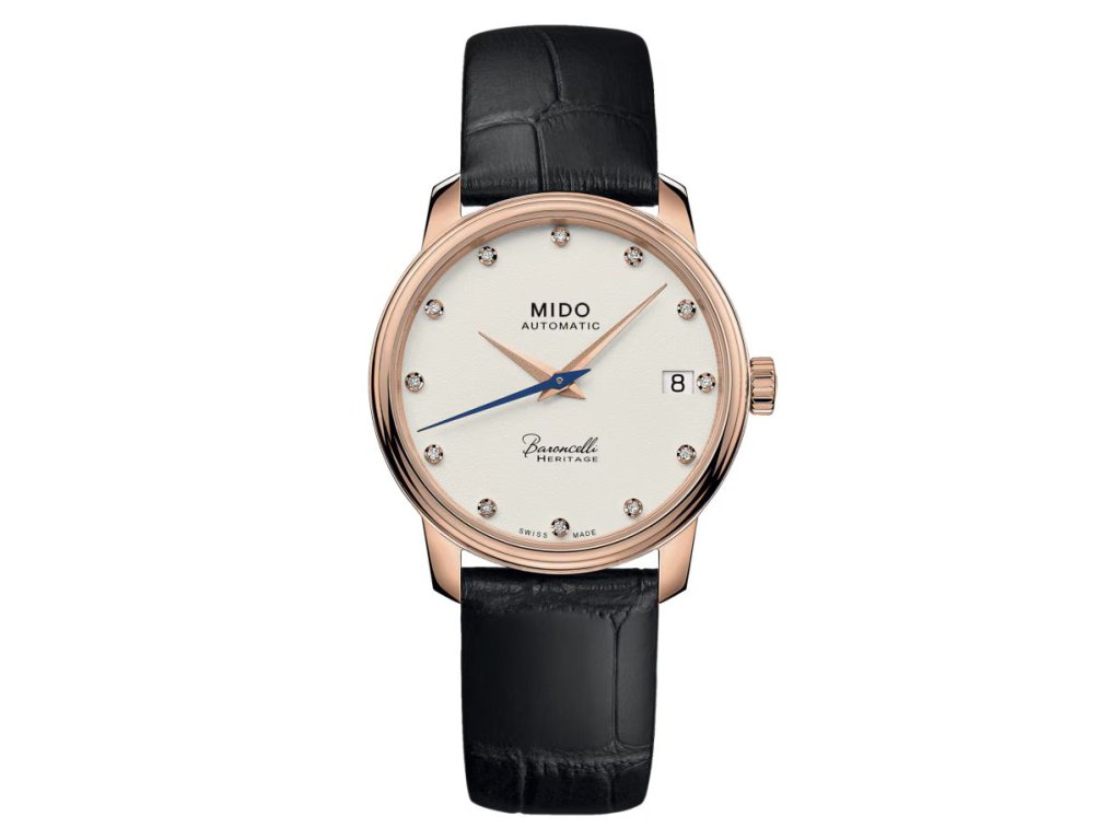 HODINKY MIDO WOMAN M027207362660 (33MM). Typ mechanizmu: TYP: AUTOMATICKÝ. Displej: DISPLEJ: ANALÓGOVÝ. Materiál puzdra: MATERIÁL: NEREZOVÁ OCEĽ. Farba puzdra: FARBA PUZDRA: RUŽOVÁ. Materiál náramku: MATERIÁL NÁRAMKU: KOŽA. Farba náramku: FARBA NÁRAMKU: ČIERNA. Farba ciferníka: BIELA. Typ skla: SKLÍČKO: SAPPHIRE. Kľučka: BUCKLE. Priemer ciferníka: dĹŽKA CIFERNÍKA: 33 MM. Ponorný: 5ATM