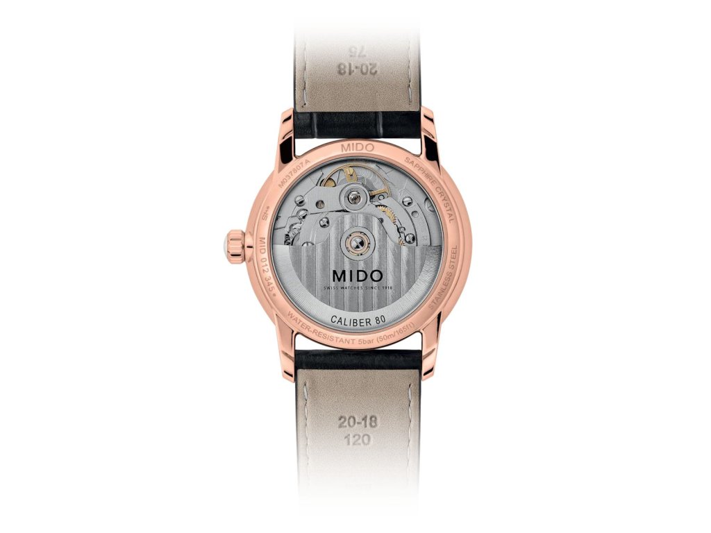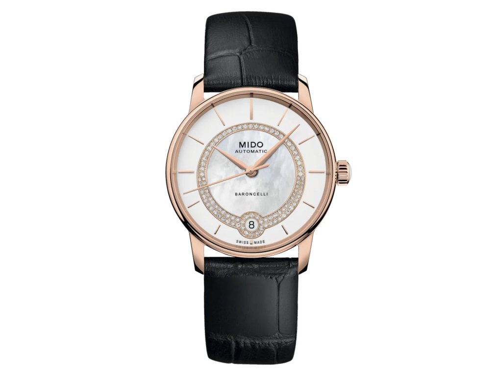 HODINKY MIDO WOMAN M037807360310 (33MM). Typ mechanizmu: TYP: AUTOMATICKÝ. Displej: DISPLEJ: ANALÓGOVÝ. Materiál puzdra: MATERIÁL: NEREZOVÁ OCEĽ. Farba puzdra: FARBA PUZDRA: RUŽOVÁ. Materiál náramku: MATERIÁL NÁRAMKU: KOŽA. Farba náramku: FARBA NÁRAMKU: ČIERNA. Farba ciferníka: BIELA. Typ skla: SKLÍČKO: SAPPHIRE. Kľučka: BUCKLE. Priemer ciferníka: dĹŽKA CIFERNÍKA: 33 MM. Ponorný: 10ATM