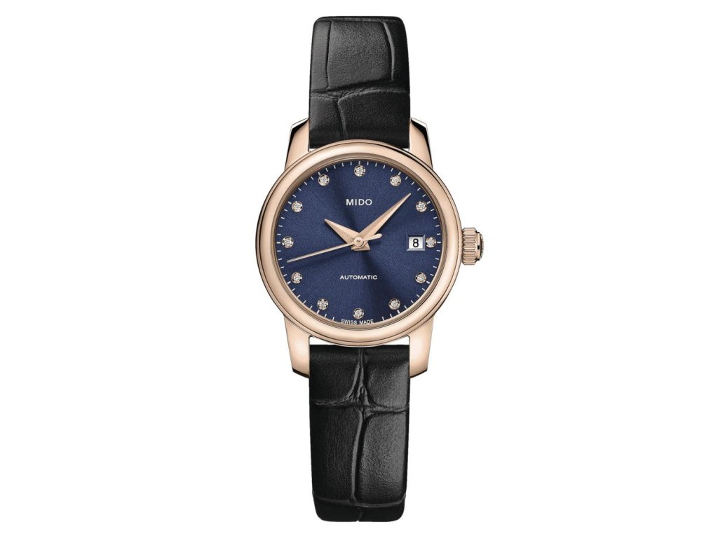 HODINKY MIDO WOMAN M039007360460 (25MM). Typ mechanizmu: TYP: AUTOMATICKÝ. Displej: DISPLEJ: ANALOGICKÝ. Materiál puzdra: MATERIÁL: NEREZOVÁ OCEĽ. Farba puzdra: FARBA PUZDRA: RUŽOVÁ. Materiál náramku: MATERIÁL NÁRAMKU: KOŽA. Farba náramku: FARBA NÁRAMKU: ČIERNA. Farba ciferníka: MODRÁ. Typ skla: SKLÍČKO: SAPPHIRE. Zapínanie: BUCKLE. Priemer ciferníka: dĹŽKA CIFERNÍKA: 25 MM. Ponorný: 5ATM