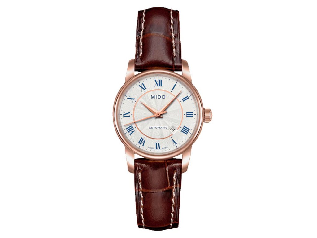 HODINKY MIDO WOMAN M76002218 (29MM). Typ mechanizmu: TYP: AUTOMATICKÝ. Displej: TYP: ANALÓGOVÝ. Materiál puzdra: MATERIÁL: NEREZOVÁ OCEĽ. Farba puzdra: FARBA PUZDRA: RUŽOVÁ. Materiál náramku: MATERIÁL NÁRAMKU: KOŽA. Farba náramku: FARBA NÁRAMKU: HNEDÁ. Farba ciferníka: BIELA. Typ skla: SKLÍČKO: SAPPHIRE. Kľučka: BUCKLE. Priemer ciferníka: dĹŽKA CIFERNÍKA: 29MM. Ponorný: hĹBKA: 3ATM