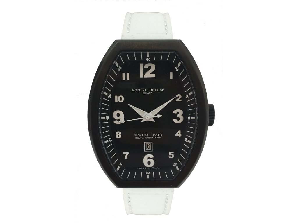 HODINKY MONTRES DE LUXE WOMAN 09EX-LAB-8300 (35MM). Typ mechanizmu: QUARTZ. Displej: TYP: ANALÓGOVÝ. Materiál puzdra: MATERIÁL: NEHRDZAVEJÚCA OCEĽ. Farba puzdra: FARBA PUZDRA: ČIERNA. Materiál náramku: MATERIÁL NÁRAMKU: KOŽA. Farba náramku: FARBA NÁRAMKU: BIELA. Farba ciferníka: MODRÁ. Typ skla: SKLÍČKO: MINERÁLNE. Clousure: SKLÍČKO: VYPÚŠŤACIE. Priemer ciferníka: dĹŽKA CIFERNÍKA: 35 MM. Ponorný: 9ATM