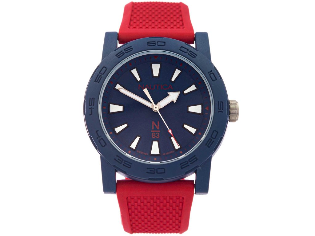 HODINKY NAUTICA MAN NAPATF204 (42,5MM). Typ mechanizmu: QUARTZ. Displej: TYP: ANALÓGOVÝ. Materiál puzdra: MATERIÁL PUZDRA: KERAMIKA. Farba puzdra: FARBA: MODRÁ. Materiál náramku: MATERIÁL NÁRAMKU: SILIKÓN. Farba náramku: FARBA NÁRAMKU: ČERVENÁ. Farba ciferníka: MODRÁ. Typ skla: TYP SKLA: MINERÁLNE. Uzáver: BUCKLE. Priemer ciferníka: dĹŽKA CIFERNÍKA: 42,5 MM. Ponorný: 5ATM