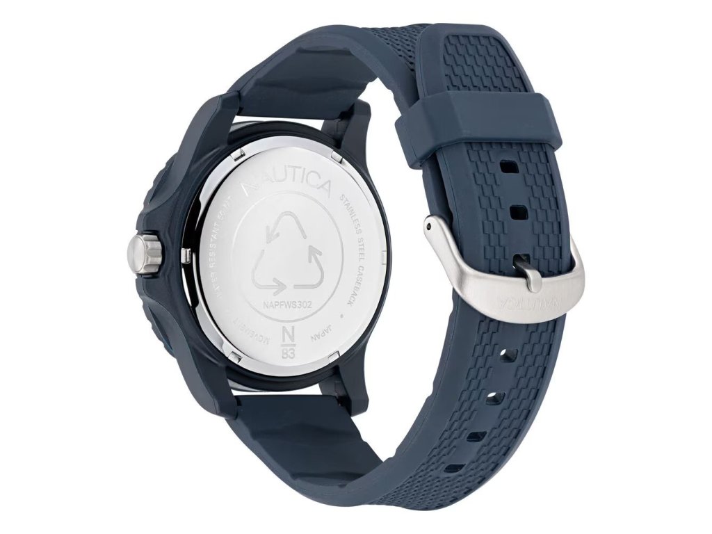 HODINKY NAUTICA MAN NAPFWS302 (45MM). Typ mechanizmu: QUARTZ. Displej: HODINKY: ANALÓGOVÉ. Materiál puzdra: MATERIÁL PUZDRA: ŽIVICA. Farba puzdra: FARBA PUZDRA: MODRÁ. Materiál náramku: MATERIÁL NÁRAMKU: SILIKÓN. Farba náramku: FARBA NÁRAMKU: MODRÁ. Farba ciferníka: MODRÁ. Typ skla: MINERÁLNE. Uzáver: BUCKLE. Priemer ciferníka: dĹŽKA CIFERNÍKA: 45 MM. Ponorný: 5ATM
