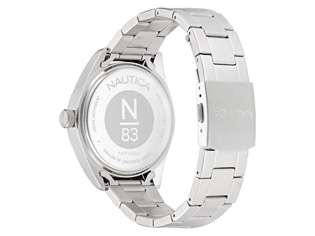 HODINKY NAUTICA MAN NAPFWS307 (44MM). Typ mechanizmu: QUARTZ. Displej: HODINKY: ANALOGICKÉ. Materiál puzdra: MATERIÁL: NEHRDZAVEJÚCA OCEĽ. Farba puzdra: FARBA PUZDRA: ŠEDÁ. Materiál náramku: MATERIÁL NÁRAMKU: NEHRDZAVEJÚCA OCEĽ. Farba náramku: FARBA NÁRAMKU: ŠEDÁ. Farba ciferníka: MODRÁ. Typ skla: SKLÍČKO: MINERÁLNE. Clousure: TLAKOVÁ NÁDOBA: TLAKOVÁ. Priemer ciferníka: dĹŽKA CIFERNÍKA: 44MM. Ponorný: 5ATM