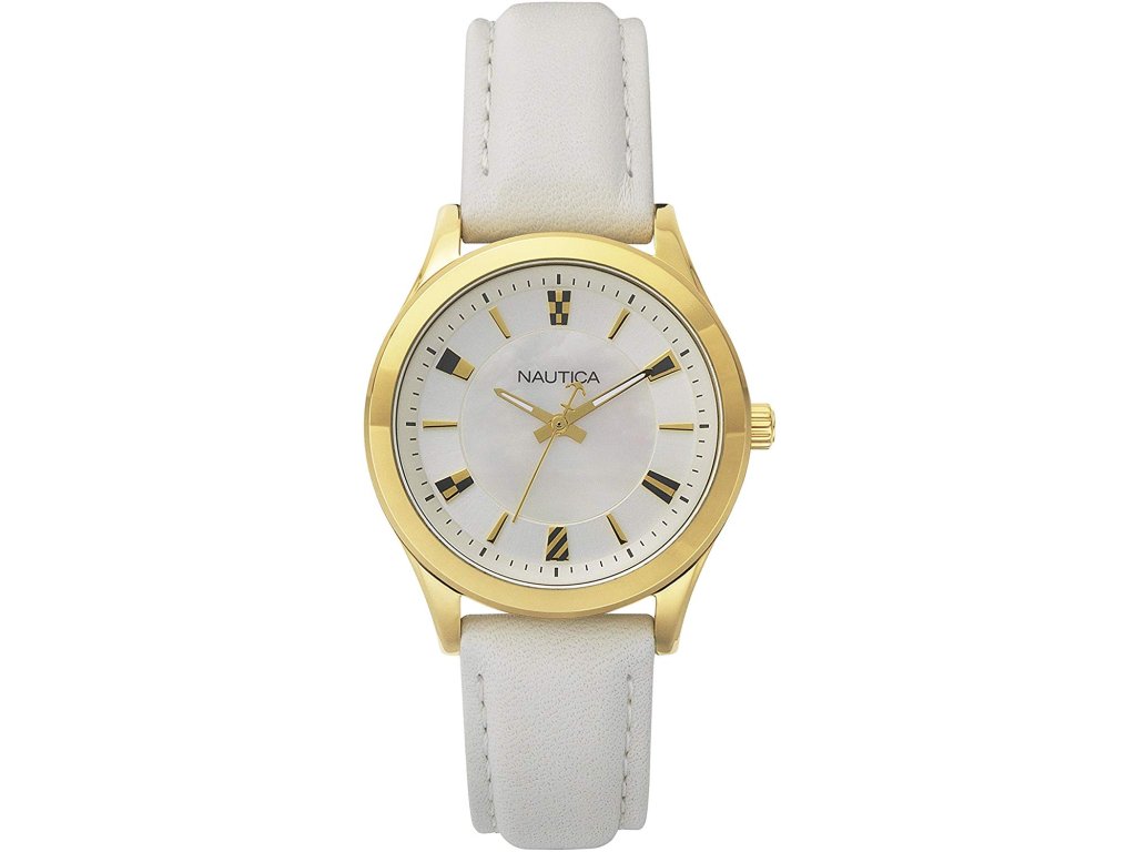 HODINKY NAUTICA WOMAN NAPVNC001 (36MM). Typ mechanizmu: QUARTZ. Displej: HODINKY: ANALOGICKÉ. Materiál puzdra: MATERIÁL PUZDRA: OCEĽ. Farba puzdra: FARBA PUZDRA: ZLATÁ. Materiál náramku: MATERIÁL NÁRAMKU: KOŽA. Farba náramku: FARBA NÁRAMKU: BIELA. Farba ciferníka: BIELA. Typ skla: SKLÍČKO: MINERÁLNE. Kľučka: BUCKLE. Priemer ciferníka: dĹŽKA CIFERNÍKA: 36MM. Ponorný: 5ATM