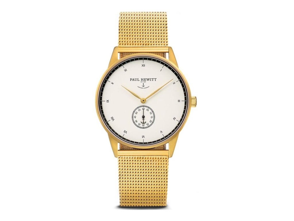 HODINKY PAUL HEWITT WOMAN PHM1GW4M503 (36MM). Typ mechanizmu: QUARTZ. Displej: DISPLEJ: ANALÓGOVÝ. Materiál puzdra: MATERIÁL: NEHRDZAVEJÚCA OCEĽ. Farba puzdra: ZLATÁ. Materiál náramku: MATERIÁL NÁRAMKU: OCEĽ. Farba náramku: FARBA NÁRAMKU: ZLATÁ. Farba ciferníka: BIELA. Typ skla: SKLÍČKO: SAPPHIRE. Kľúč: BROOCH. Priemer ciferníka: dĹŽKA CIFERNÍKA: 36 MM. Ponorný: 5ATM