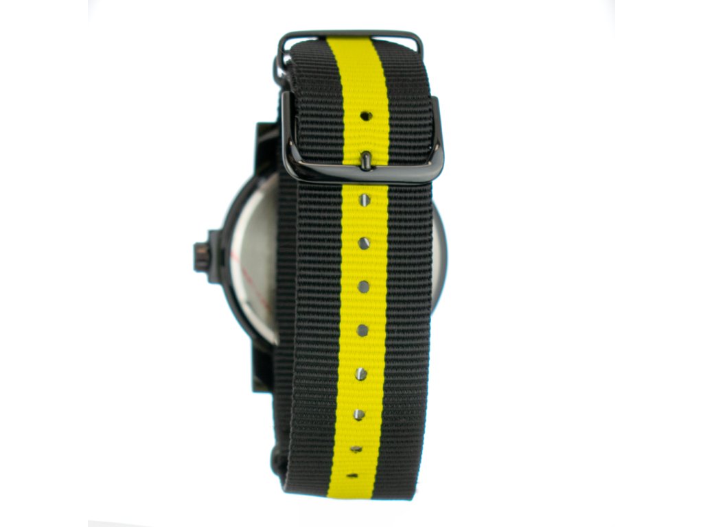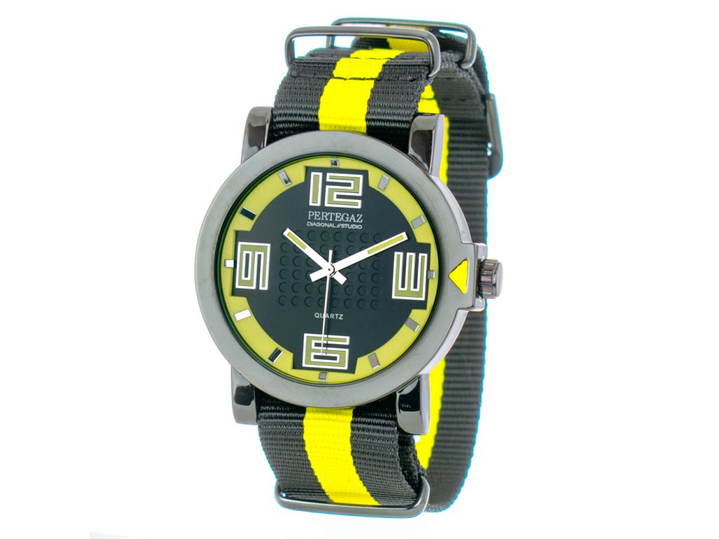 HODINKY PERTEGAZ MAN PDS-023-A (40MM). Typ mechanizmu: QUARTZ. Displej: HODINKY: ANALÓGOVÉ. Materiál puzdra: MATERIÁL PUZDRA: OCEĽ. Farba puzdra: FARBA PUZDRA: ČIERNA. Materiál náramku: MATERIÁL: NYLON. Farba náramku: FARBA NÁRAMKU: ČIERNA, ŽLTÁ. Farba ciferníka: ČIERNA. Typ skla: SKLÍČKO: MINERÁLNE. Kľučka: BUCKLE. Priemer ciferníka: dĹŽKA CIFERNÍKA: 40MM. Ponorný: NE