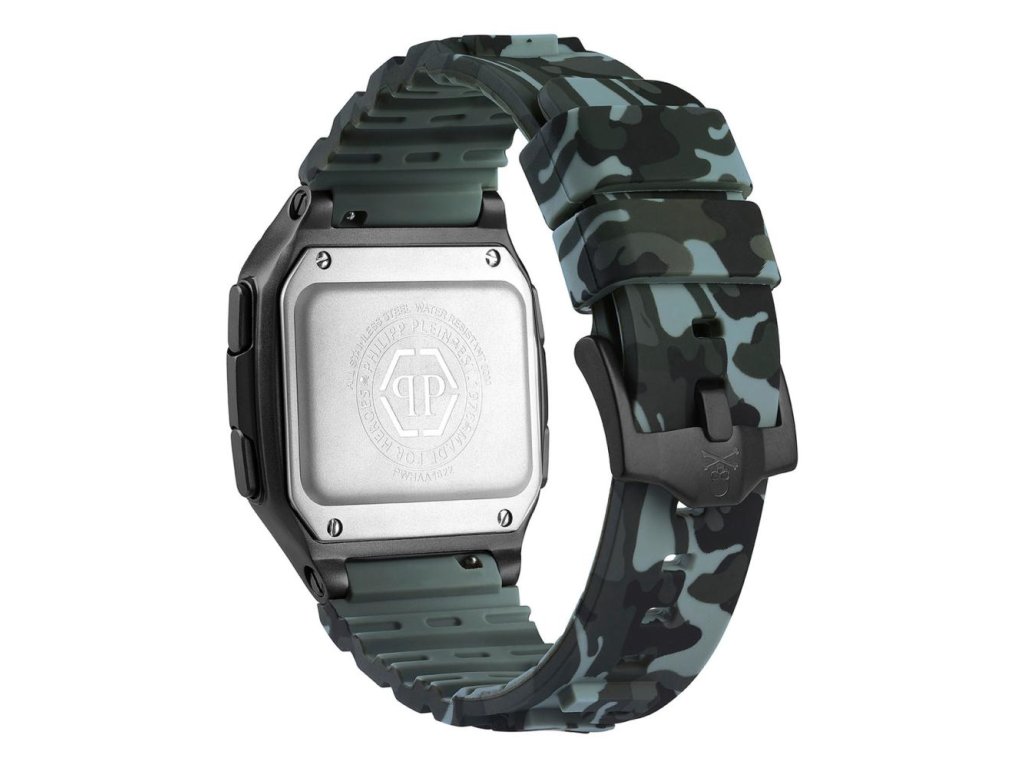 HODINKY PHILIPP PLEIN MAN PWHAA1822 (44MM). Typ mechanizmu: QUARTZ. Displej: DIGITÁLNY. Materiál puzdra: MATERIÁL: NEHRDZAVEJÚCA OCEĽ. Farba puzdra: FARBA PUZDRA: ČIERNA. Materiál náramku: MATERIÁL NÁRAMKU: SILIKÓN. Farba náramku: FARBA NÁRAMKU: ČIERNA. Farba ciferníka: ČIERNA. Typ skla: MINERÁLNE. Kľučka: BUCKLE. Priemer ciferníka: dĹŽKA CIFERNÍKA: 44MM. Ponoriteľnosť: 5 ATM