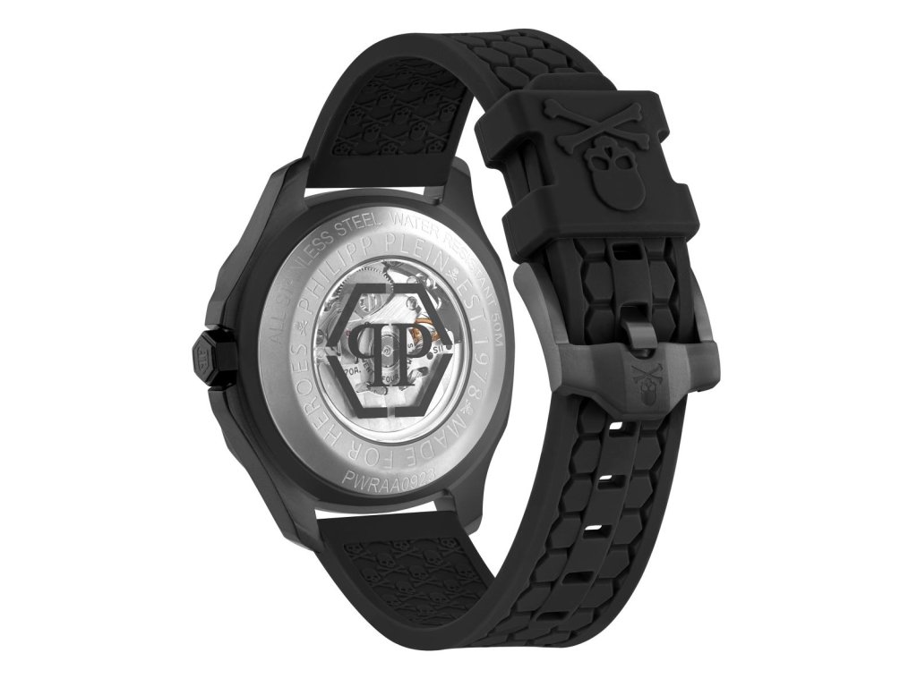 HODINKY PHILIPP PLEIN MAN PWRAA0923 (42MM). Typ mechanizmu: TYP: AUTOMATICKÝ. Displej: DISPLEJ: ANALÓGOVÝ. Materiál puzdra: MATERIÁL: NEREZOVÁ OCEĽ. Farba puzdra: FARBA PUZDRA: ČIERNA. Materiál náramku: MATERIÁL NÁRAMKU: SILIKÓN. Farba náramku: FARBA NÁRAMKU: ČIERNA. Farba ciferníka: FARBA CIFERNÍKA: ŠEDÁ. Typ skla: SKLÍČKO: MINERÁLNE. Kľučka: BUCKLE. Priemer ciferníka: dĹŽKA CIFERNÍKA: 42MM. Ponoriteľnosť: 5 ATM