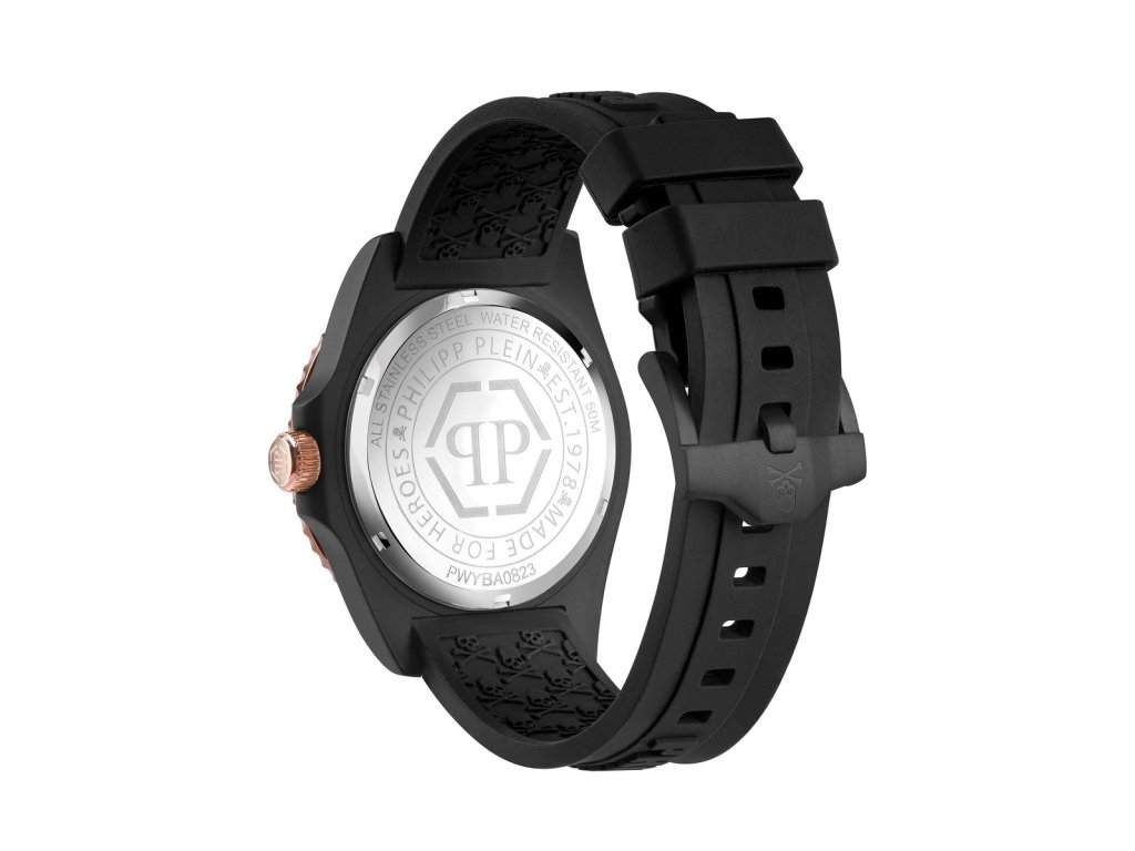 HODINKY PHILIPP PLEIN MAN PWYBA0823 (44MM). Typ mechanizmu: QUARTZ. Displej: HODINKY: ANALÓGOVÉ. Materiál puzdra: MATERIÁL: NEHRDZAVEJÚCA OCEĽ. Farba puzdra: FARBA PUZDRA: ČIERNA. Materiál náramku: MATERIÁL NÁRAMKU: SILIKÓN. Farba náramku: FARBA NÁRAMKU: ČIERNA. Farba ciferníka: ČIERNA. Typ skla: MINERÁLNE. Kľučka: BUCKLE. Priemer ciferníka: dĹŽKA CIFERNÍKA: 44MM. Ponoriteľnosť: 10 ATM